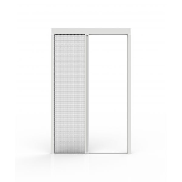 Zanzariera con apertura a trascinamento laterale grazia al quale la barra maniglia si ferma nella posizione desiderata.