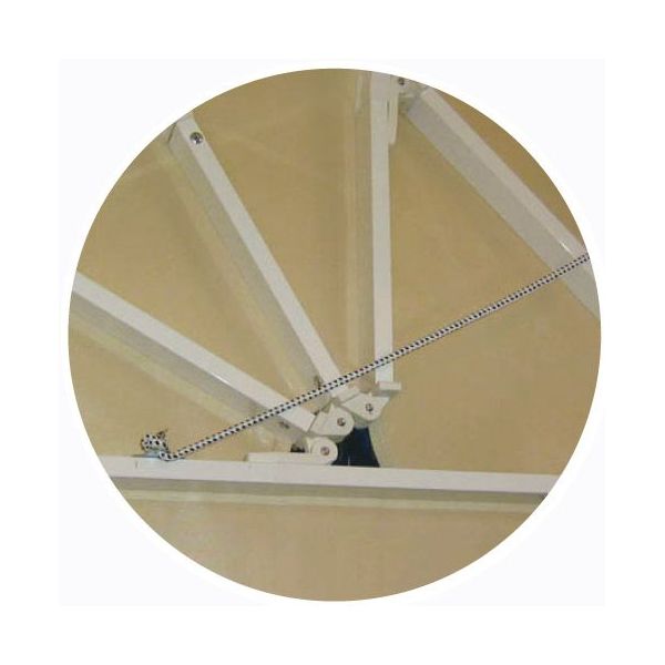 Profili in alluminio varie dimensioni in base alle misure, curve in alluminio rivestite, fissaggio del telo direttamente su alluminio, comando a fune o a motore Volant a scelta, rifiniture volant in tinta.