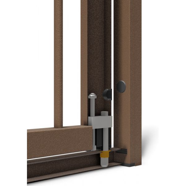 La serratura aziona un rinvio a doppio effetto con paletti di sicurezza diametro 14mm.