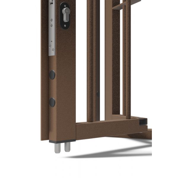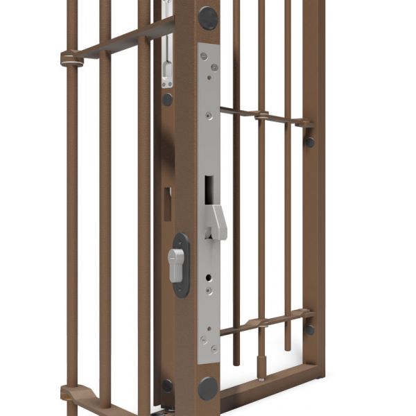 La serratura in dotazione è in acciaio inox con gancio frontale a baionetta. E' fornito, di serie, il mezzo cilindro di sicurezza con chiavi unificate dotato di una chiave cantiere e tre chiavi standard.