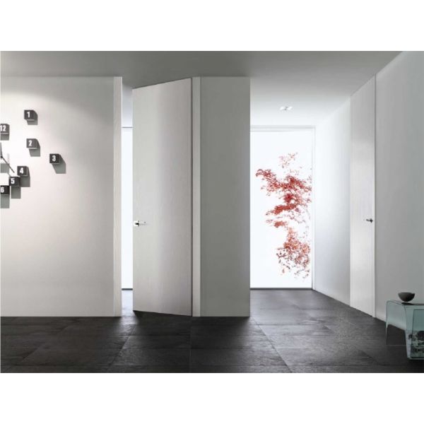 Sistema rototraslante e modello tabula in frassino laccato poro aperto.