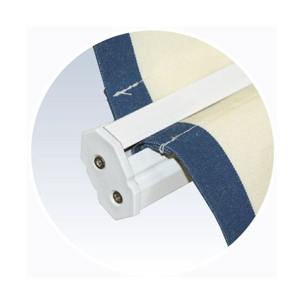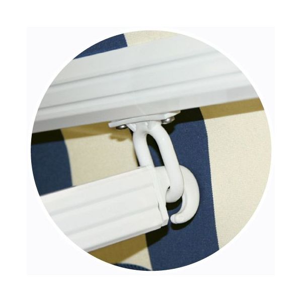 Tenda a caduta verticale senza cassonetto con braccetti a ringhiera da cm 50, manovra con argano oppure a molla, motorizzabile, installazione a soffitto oppure a parete.