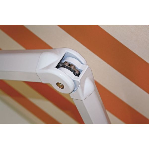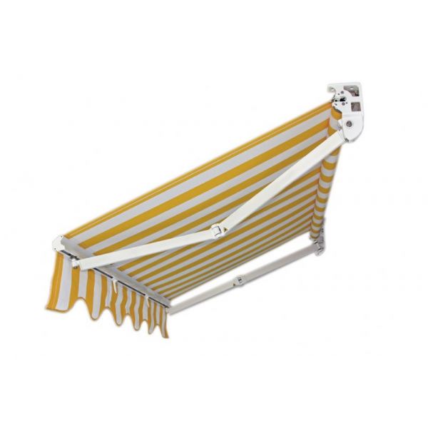 Tenda a braccia estensibili con staffe indipendenti laterali, manovra ad argano o motorizzabile, montaggio sia a pareche che a soffitto.