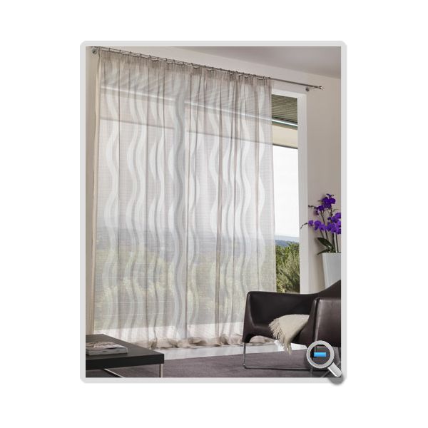 Confezione arricciatura su fettuccia a piega piatta, con passanti in tessuto, piega fiamminga a 2 pieghe o piega fiamminga a 3 pieghe.