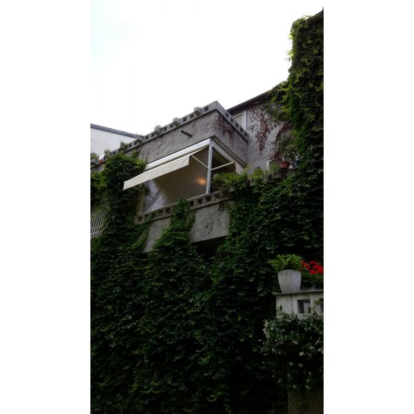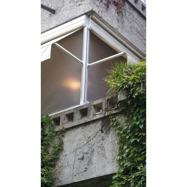 Tenda a caduta estate/inverno con cassonetto, guide laterali e braccetti