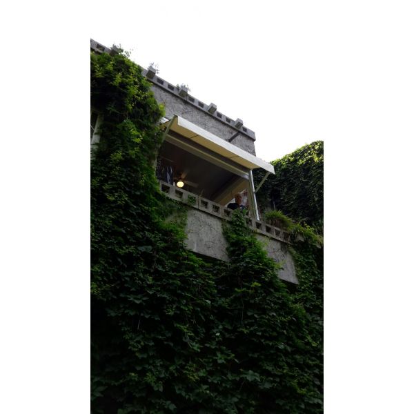 Tenda con guide laterali autoportanti con braccetti laterali, piedino regolabile ad espansione, con due rulli sul primo rullo viene applicato il telo invernale in VINITEX, sul secondo rullo il telo estivo in tessuto acrilico.