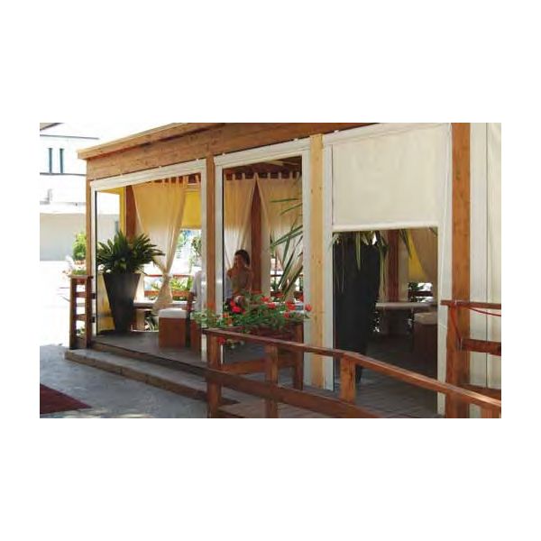 Tenda a caduta con guide laterali da fissare in nicchia, ottima per chiusure totali perchè non permette il passaggio di luce o aria.