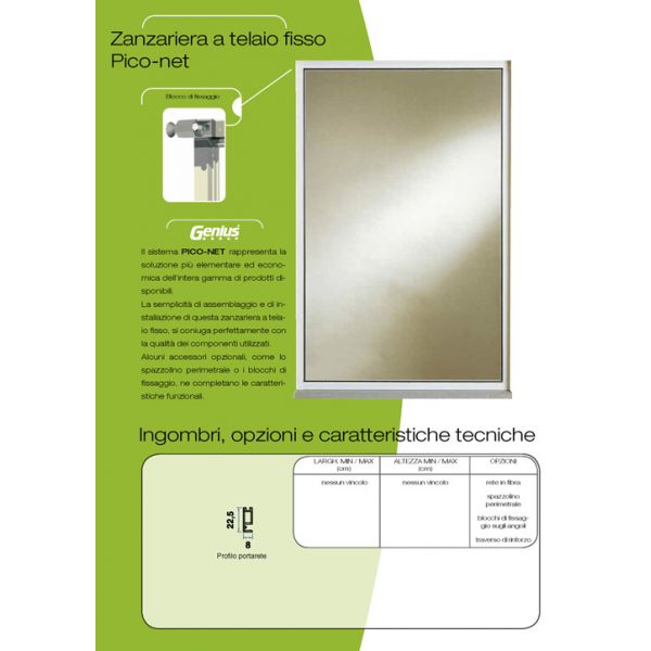 Il sistema PICO-NET rappresenta la soluzione più elementare ed economica dell’intera gamma di prodotti disponibili. Alcuni accessori opzionali, come lo spazzolino perimetrale o i blocchi di fissaggio, ne completano le caratteristiche funzionali.