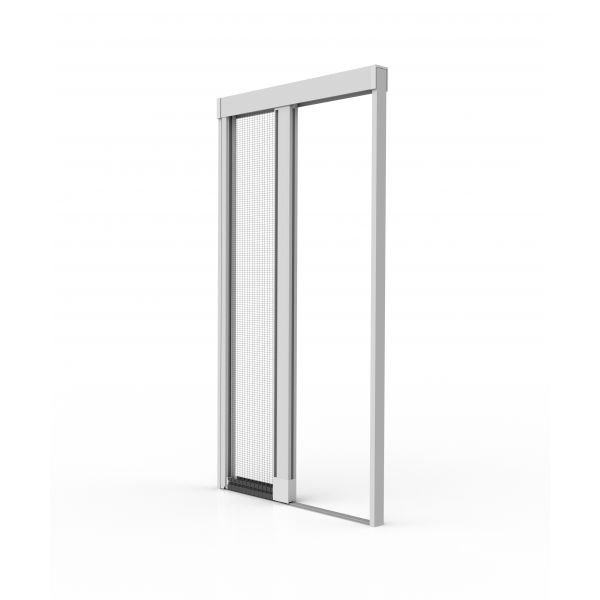 Chiusura a molla e blocco a calamita, con una leggera trazione sblocchi la calamita aprendo la zanzariera che si riavvolge per la metà circa
