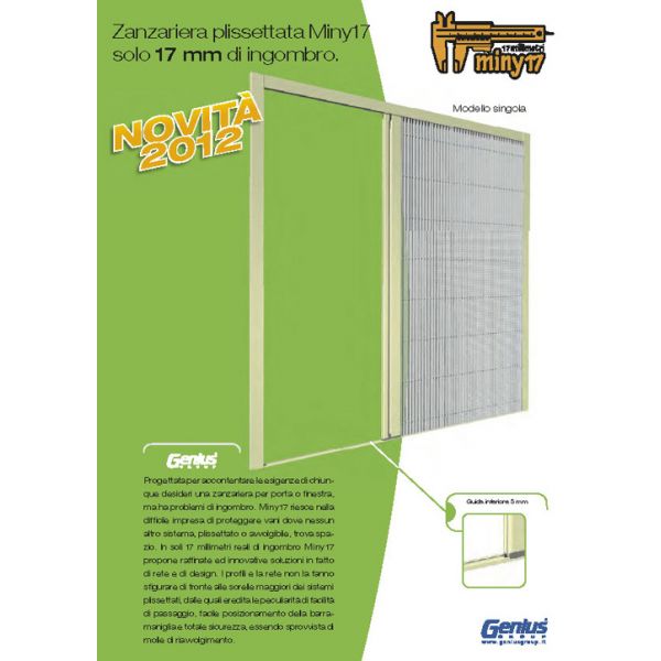 Progettata per accontentare le esigenze di chiunque desideri una zanzariera ma ha problemi di ingombro. Miny17 riesce nella difficile impresa di proteggere vani dove nessun altro sistema, plissettato o avvolgibile, trova spazio. 17 millimetri di ingombro per i casi più difficlii. Adatta anche all'installazione su finestre.